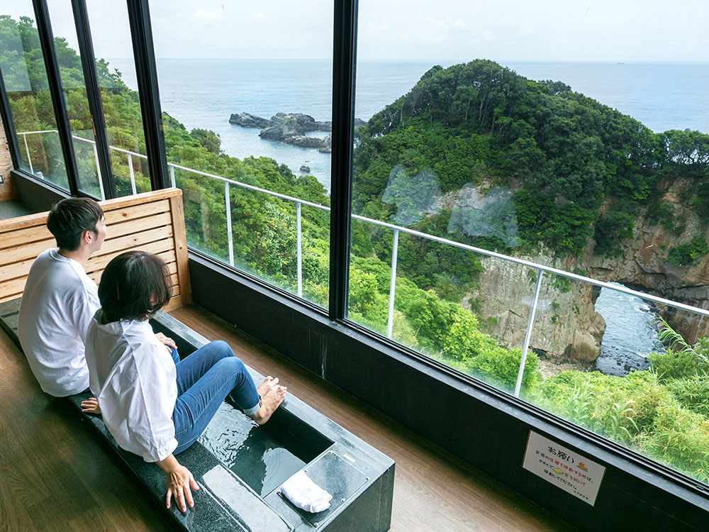 露天浴池內,緩緩深呼吸中,單純弱放射能冷礦泉的天然成分,讓身體心靈都得到療癒。寬闊的天空下,一邊俯瞰太平洋海角,一邊享受傳說中療癒百病的天然溫泉。